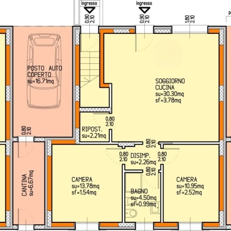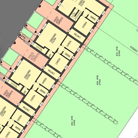 A due passi dal centro, appartamenti bicamere e biservizi al piano terra con ingresso indipendente, giardino, posto auto coperto e posto auto scoperto; appartamento bicamere e biservizi al primo piano con terrazza, ripostiglio, garage e posto auto scoperto; appartamento bicamere e biservizi al secondo piano mansardato con travi a vista, terrazza, ripostiglio, garage e posto auto scoperto.